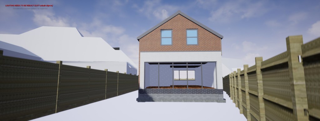 Both the export and import process was quicker and easier when handled by *.udatasmith. Only a few textures and 3d objects had issues and none of these were on the more carefully modeled house. This is most probably a result of modelling practices and the nature of Sketchup; presumably this would be less of an issue with BIM software such as Revit where the 3D modelling is a little more consistent and ‘on-the-rails’.