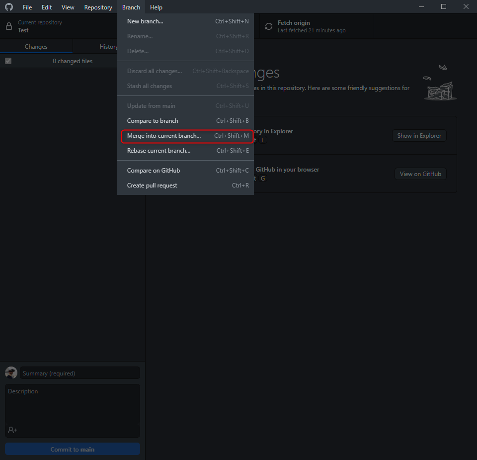 Now if you’re getting familiar with using this, you may just want to keep pushing commits to the main branch which roughly translates to “Saving a version of your application to the cloud”. You can, however, setup new ‘branches’ for prototyping, meaning that you can setup a branch for as many things as you need and each one won’t affect the other until you decide to ‘merge’. Its standard practice to have the latest working version of your application pushed to the ‘main’ branch. I.e. you shouldn’t have any prototyping or experimentation in your ‘main’ branch. When you want to merge, go to the branch you want to merge stuff into and click branch/merge into current branch.